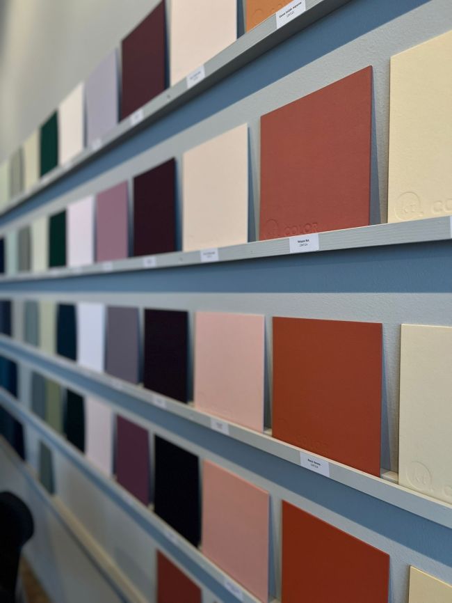 Dabei konnten wir die Materialität der KT.COLOR Produkte in ihrer tatsächlichen Tiefe, Struktur und Lichtwirkung unmittelbar erfahren. Besonders überzeugend war die konsequente Materialqualität sowie die fachliche Kompetenz und Leidenschaft von Katrin Trautwein, die sich in jedem Farbkonzept und jeder Rezeptur widerspiegeln.