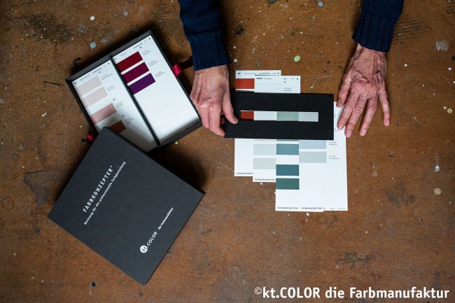 Ein wesentliches Merkmal von KT.COLOR ist die handwerkliche Herstellung und Verarbeitung. Jede Farbcharge wird mit hoher Materialkenntnis und konsequenter Qualitätskontrolle produziert.